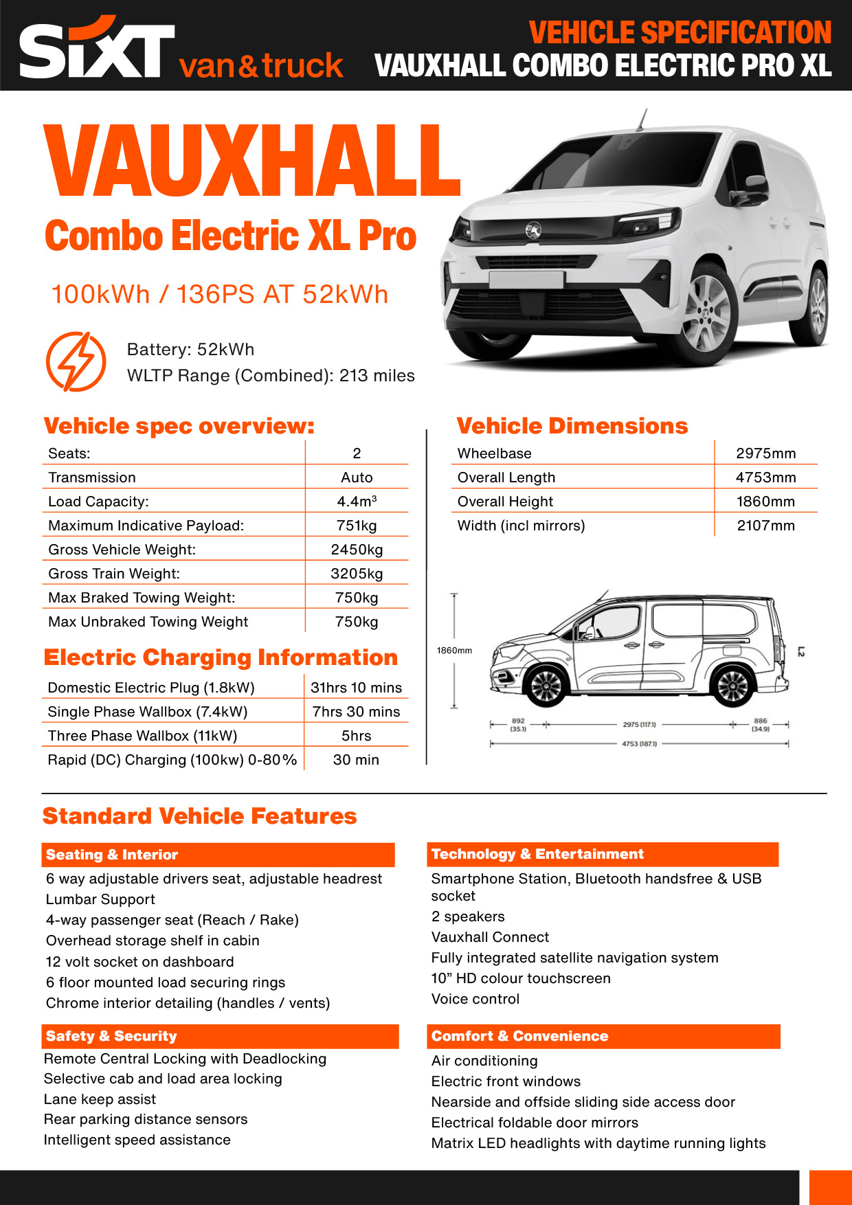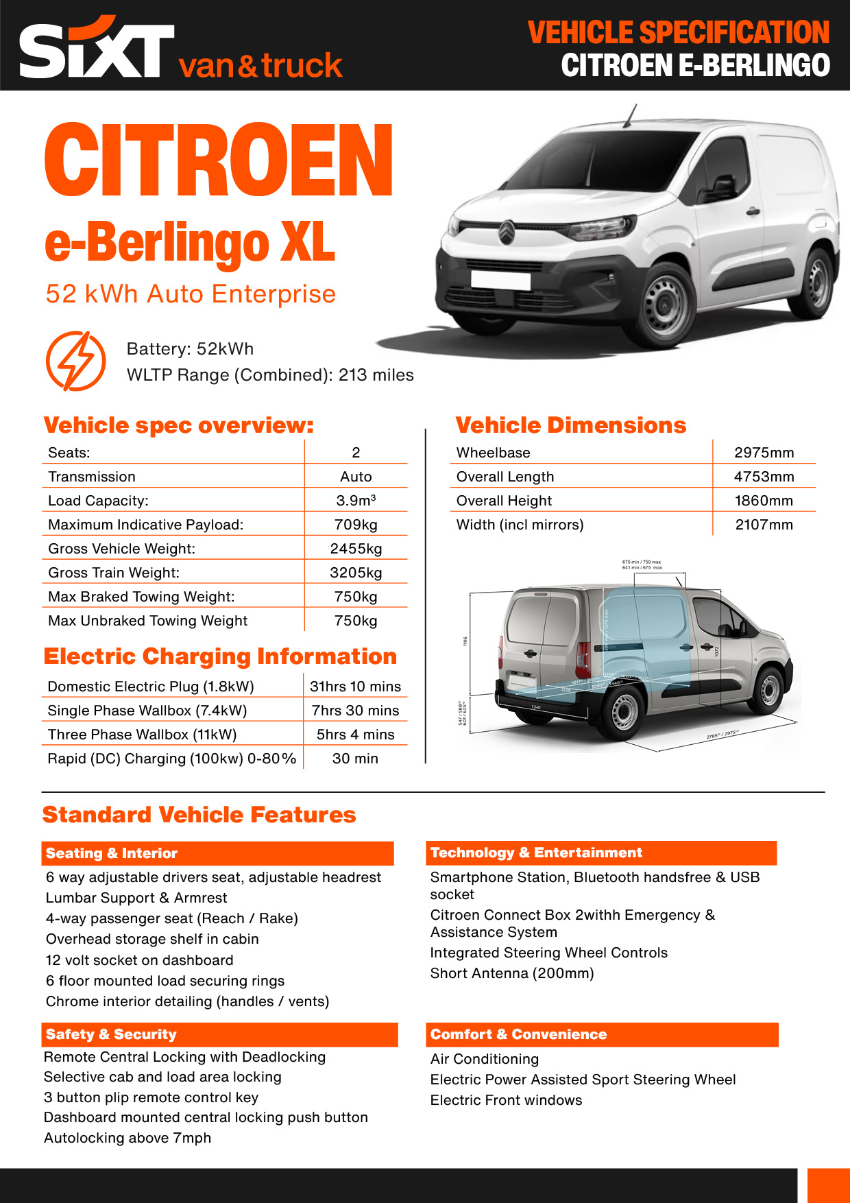 • Price parity – electric costs the same as diesel with SIXT van & truck