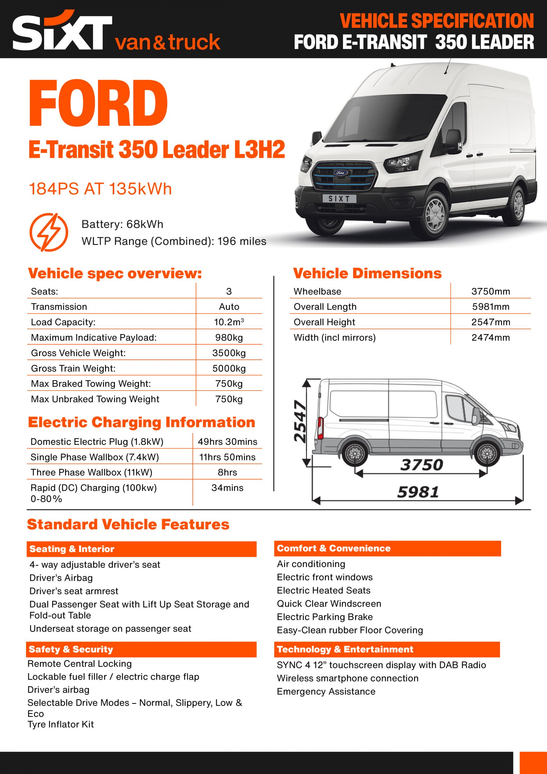 Suitable for: Parcel & Pallet Deliveries, E-Commerce Fulfilment, Construction, Contractors, Shopfitters, Commercial Installation, Retail Stock Delivery, Property Services, Stage & Lighting Crews, AV Crews, Catering Delivery.