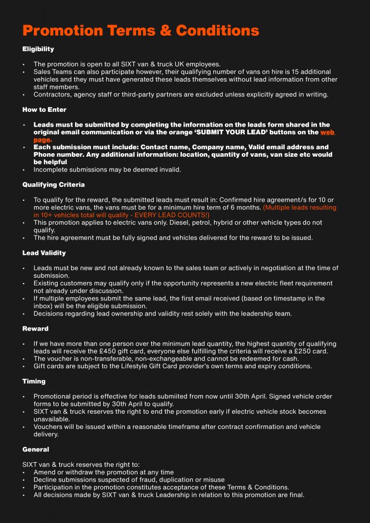 You don’t have to work in sales to help grow SIXT van & truck! Whether you’re chatting to customers, suppliers, friends, family or local businesses, you might hear about someone considering the switch to electric commercial vehicles. Our teams tell us they want to support the business, this is your chance to do exactly that!